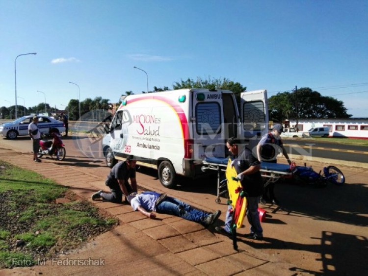 Las motos circulaban por la colectora en dirección a Posadas y por causas que se tratan de establecer terminaron colisionando. Uno de los conductores resultó herido.