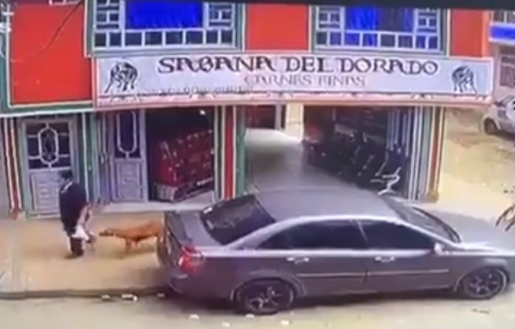 Cámaras de seguridad registraron el hecho cuando un vecino del barrio Sabanas del Dorado, en Bogotá, salía con una bolsa llena de carnes fde un establecimiento comercial . En la grabación, que fue captada por una cámara de seguridad ubicada frente al lugar donde sucedieron los hechos, se observa a un curioso ladrón siguiéndole el paso al ciudadano y de un certero mordisco le arrebata la bolsa con las compras.