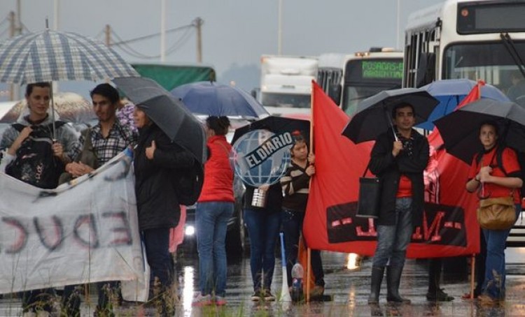 Este miércoles 26 hubo una nueva movilización que terminó con una reunión con Miguel Onetto, secretario privado del gobernador Maurice Closs, quien les ofreció una reunión el próximo viernes, "pero no nos aseguró ni prometió que vayan a devolver lo descontado a los colegas, entonces tenemos que seguir", aseguró Estela Genesini, secretaria general de la Unión de Docentes Nueva Argentina de Misiones (Udnam) a PRIMERA EDICIÓN.Una vez finalizado el encuentro de casi dos horas con Onetto, los referentes de los gremios en lucha, informaron lo sucedido en la comitiva y luego se decidió, en asamblea, marchar por las calles de Posadas y cortar, por segunda vez en cinco días, el puente internacional San Roque González de Posadas.