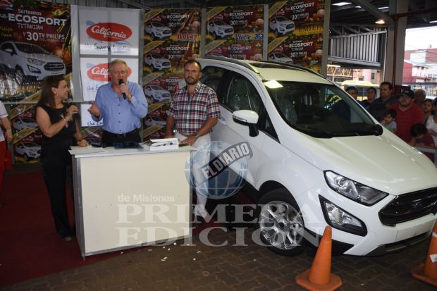 Además del 0Km, se repartieron 30 televisores y hubo premios sorpresa para los presentes. CONOZCA A LOS GANADORES Y VEA LAS FOTOS.La camioneta Ford Ecosport Titanium 0 Km que ponía en juego este miércoles la cadena de Supermercados California en su tradicional sorteo de fin de año fue a parar a manos de la posadeña Ana Zulema Drozina, en una ceremonia celebrada en la sucursal de la avenida Uruguay.