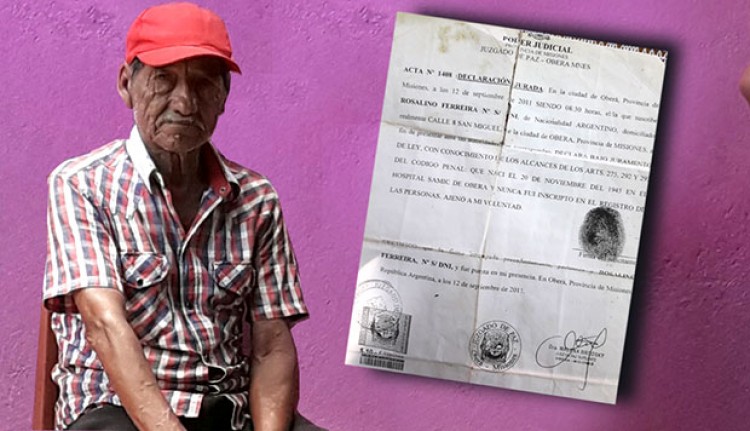 Don Rosalino Ferreira nació el 20 de noviembre de 1945, nunca fue inscripto en el Registro Nacional de las Personas, por lo que al día de hoy no existe como ciudadano argentino ya que no posee ningún documento que acredite su identidad.