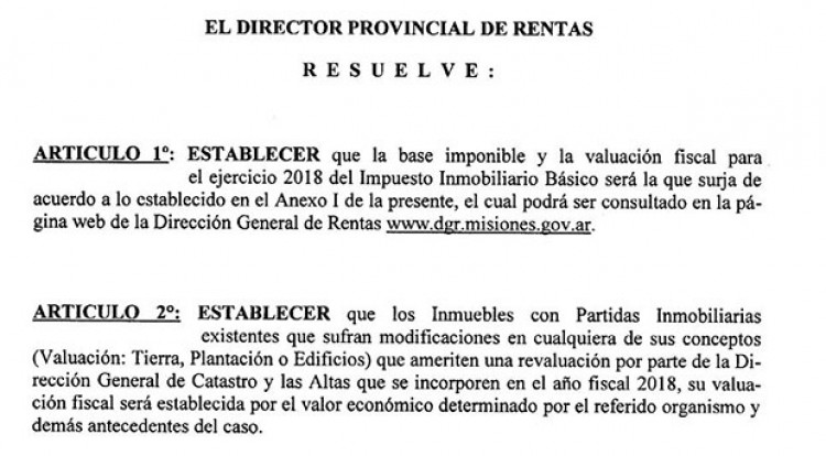 En el paquete de resoluciones publicado esta semana, Rentas también aprovechó para modificar la base imponible y la valuación fiscal para el ejercicio 2018 del Impuesto Inmobiliario, aplicando un aumento a todos los sectores.