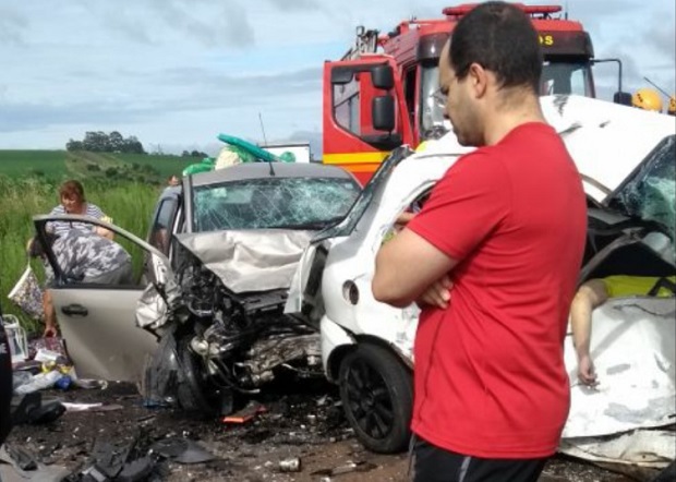 Un automóvil Fiat Palio con placas de la ciudad Carazinho que transitaba en sentido de Passo Fundo a esa localidad (según las primeras versiones en el vecino país, estaría regresando a su casa después de una fiesta) invadió la pista contraria y colisionó frontalmente con un Ford Fiesta radicado en Rosario (Argentina), que circulaba en sentido contrario.
