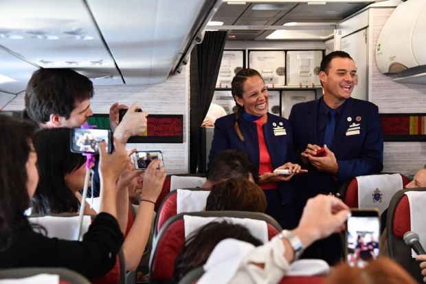“En ese momento tuve cerca al dueño de la empresa (Latam), Ignacio Cueto, que aceptó ser testigo”, contó Ciuffardi a los periodistas que viajaban con Francisco a bordo del avión, entre ellos Télam.