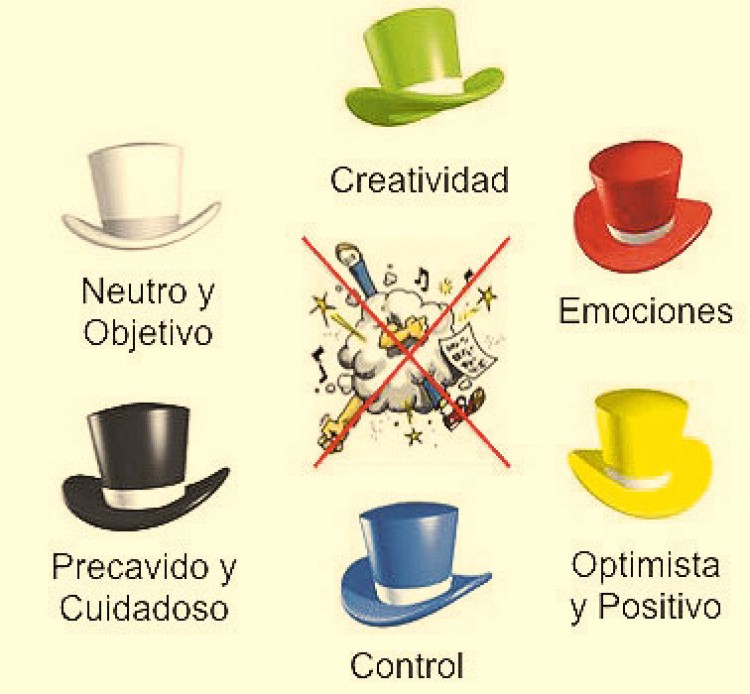 Seis sombreros para pensar es una poderosa técnica, elaborada por Edward de Bono, para la resolución de conflictos, que permite analizar una decisión desde diferentes puntos de vista, aplicando a la vez el pensamiento lateral. Podemos utilizar esta técnica ya sea para nuestras decisiones o en reuniones ya que evita las confrontaciones que suelen suceder cuando las personas con formas diferentes de pensar discuten el mismo problema.