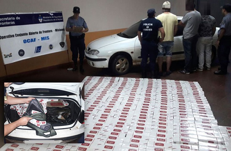 Anoche sobre avenida Ladislao Sarley, durante operativo de Nocturnidad e integral de seguridad y en el Operativo Combinado Abierto de Frontera Misiones (OCAFMIS), efectivos dependientes de la UR XI incautaron un total de 323 gruesas de cigarrillos sin aval aduanero y detuvieron a tres hombres que viajaban en un vehículo Renault Megane en el cual trasladaban el contrabando.