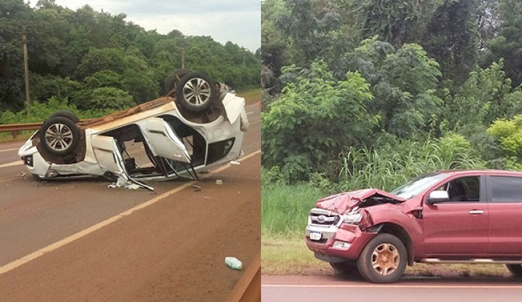 Una camioneta Ford Ranger colisionó contra un Chery Tiggo, la que terminó en posición invertida. Fue en Eldorado sobre la mencionada arteria.