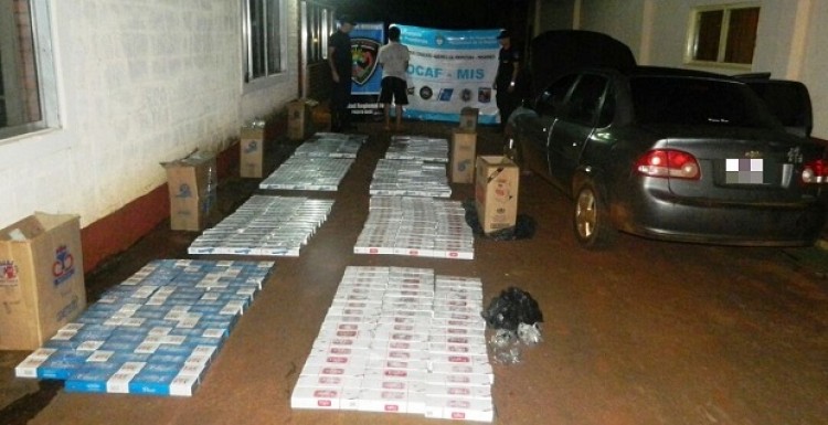 El automovilista transportaba ocho cajas grandes de cigarrillos marca Eight, Classic y 51, todo sin aval aduanero.