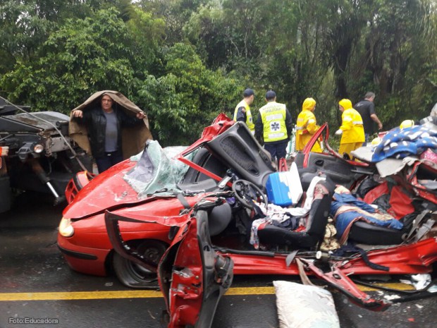 Un terrible accidente ocurrió sobre la ruta BR 470 cuando un camión volcó y aplastó un automóvil en el que viajaban misioneros. Ocurrió en la tarde de este martes y entre las víctimas hay una niña de 7 años.