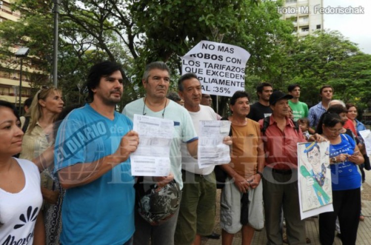 Unas 60 personas concurrieron en la plaza San Martín de Posadas, donde exigieron que la empresa de electricidad dé explicaciones sobre los excesivos aumentos aplicados en las boletas de luz. Varios usuarios mostraron las últimas boletas recibidas y en algunos casos hasta fue con más del 300% de incremento. “Yo venía pagando 300 pesos y ahora me vino una boleta de más de 3.500 pesos en una casa de familia”, contó Raquel al resto de los ciudadanos.