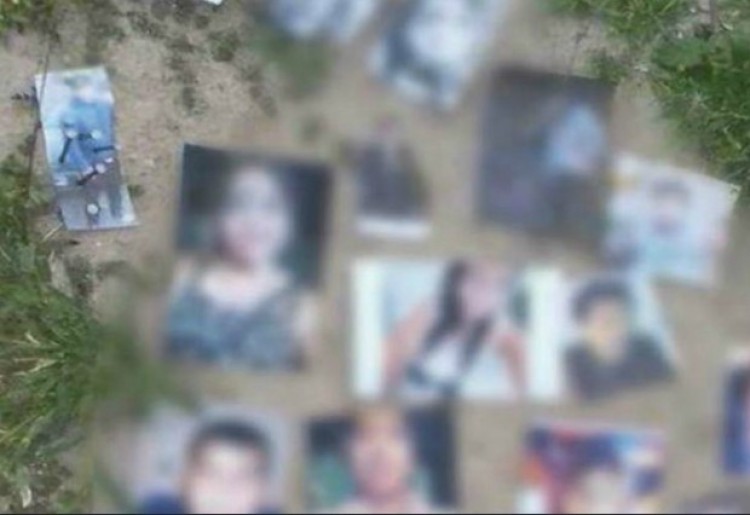 Un total de 20 fotos de personas de distintas edades aparecieron este viernes clavadas al piso en los fondos de un cementerio de la ciudad de Santiago del Estero.