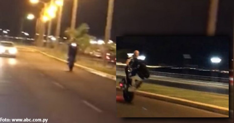 El diario ABC publicó en su sitio digital el video de un irresponsable motociclista manejando una moto a gran velocidad en el sector de la playa San José, aproximadamente a las 21 del viernes último, a pesar de que en esa zona existen carteles que indican que la velocidad de los vehículos no debe sobrepasar los 20 kilómetros por hora.