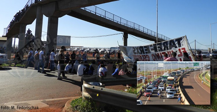 Reclaman la entrega de kits escolares para el inicio del año lectivo. Interrumpirán el tránsito cada 15 minutos en la cabecera del paso.