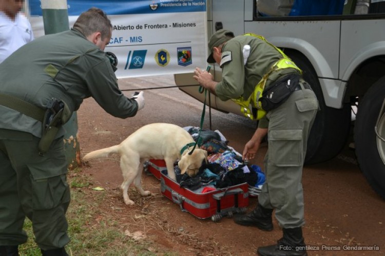 Con la ayuda del can detector de narcóticos “Nara” los gendarmes constataron que una pasajera de nacionalidad paraguaya viajaba con dos valijas donde ocultaba 26 paquetes rectangulares, que contenían “cannabis sativa”. Se decomisó un total de 35 kilos 660 gramos.