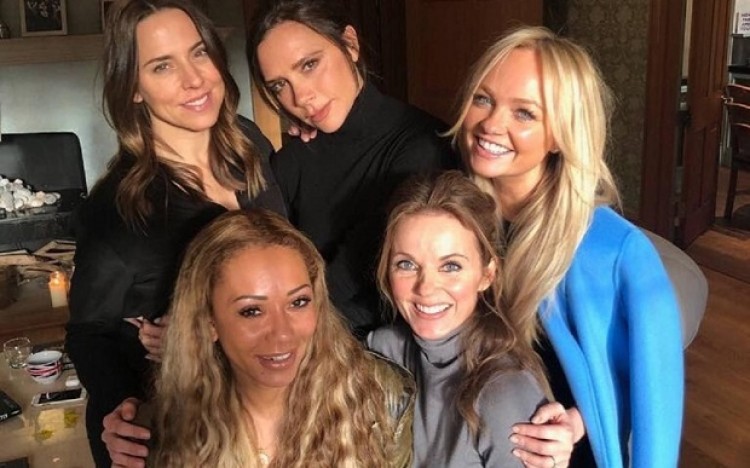 El cuadro muestra a Victoria Beckham, Melanie Brown, Melanie Chisholm, Emma Burton y Geri Halliwell, reunidas en la casa en la casa de esta última, quien había comentado en su cuenta de Instagram: ¡Qué genial ver a las chicas! El girlpower sigue vivo y en buen estado.