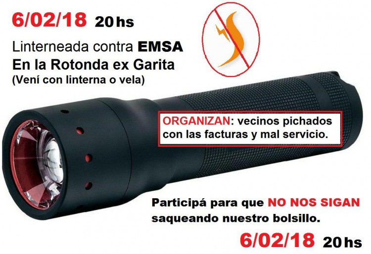 Autoconvocados de Garupá organizan para hoy a las 20 una “linterneada” pacífica en la Rotonda, ex Garita, para manifestar su rechazo al aumento tarifario de energía y reclamar por las deficiencias en el servicio.