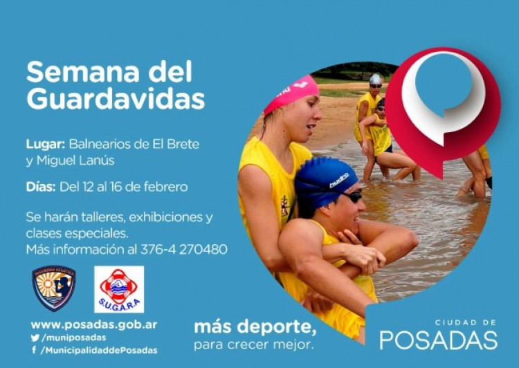 Durante una semana realizarán en los balnearios de El Brete y Miguel Lanús distintas actividades de sensibilización. Curso de RCP, charlas sobre hidratación y cómo protegerse del sol, serán algunas de las nociones que se enseñarán a los usuarios de las playas. Las actividades de sensibilización son organizadas por la Municipalidad de Posadas, el Sindicato Único de Guardavidas y Afines de la República Argentina y la Dirección General de Seguridad Acuática.