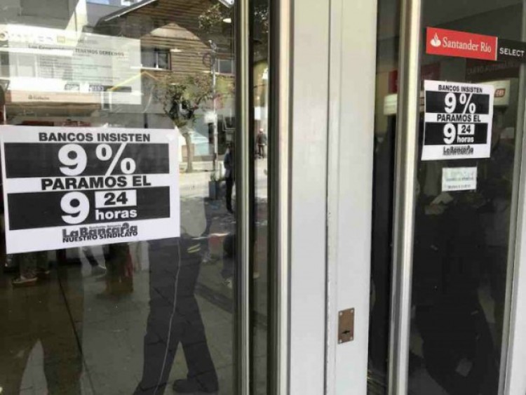 La Asociación Bancaria, gremio que agrupa a los trabajadores del sector, dispuso realizar la medida de fuerza de 24 horas en rechazo el aumento salarial del 9%, cuando la inflación proyectada por el Gobierno es de 15% para 2018.