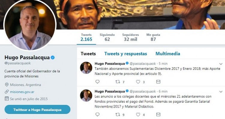 Así lo anunció el gobernador Passalacqua a traves de su cuenta en la red social Twitter.