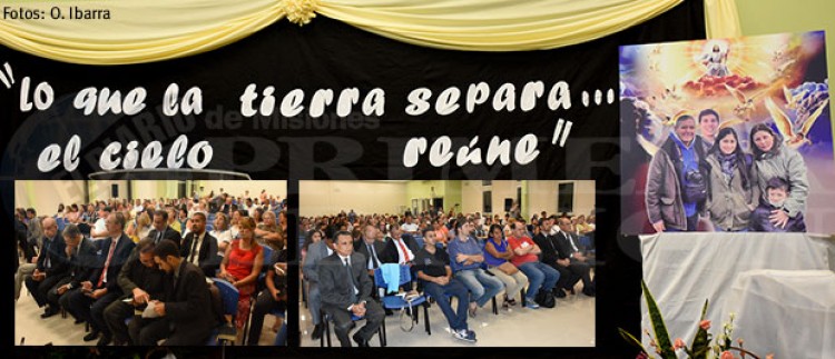 “Lo que la tierra separa…el cielo reúne”. Esa frase fue colocada en lo más alto del escenario en el marco de la reunión conmemorativa tras el fallecimiento del pastor David Arroyo Arancibia y su familia, su esposa Mirian Viviana e hijos Karen Maylén y Santiago David, como así también el sobrino de la pareja, Lucas Leguizamón, quien residía en Mar del Plata.