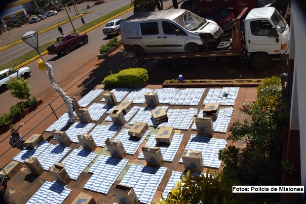 Al tiempo que se iniciaba un operativo de captura de los delincuentes, que pasado el mediodía aún no había dado frutos, la Policía constató dentro de la Renault Express la presencia de 50 cajas con 50 gruesas de cigarrillos cada una, todo sin aval aduanero.