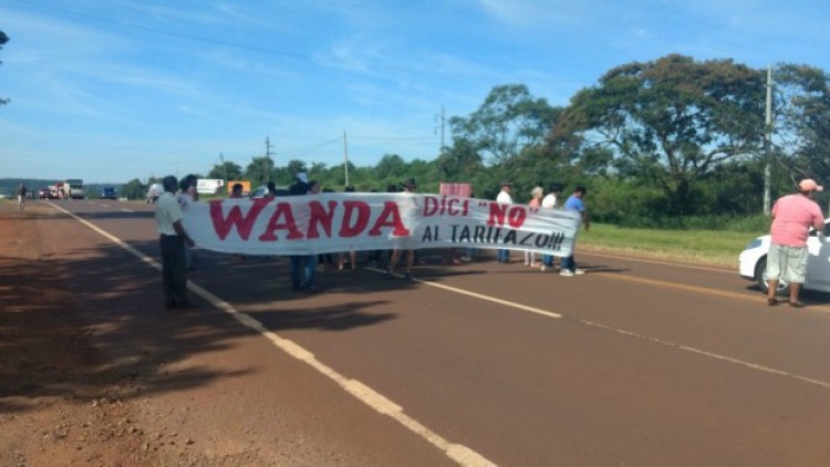 Un grupo de personas se manifiesta sobre Ruta Nacional N° 12, frente a “Las Palmitas”, km. 1594. Los manifestantes bloquean media calzada cambiando de sentido cada 15 minutos.Los vecinos se están manifestando contra el aumento de la tarifa de energía.
