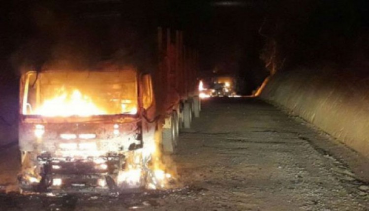 “Los 14 camiones están totalmente quemados”, dijo la autoridad, mientras que testigos aseguraron que el ataque fue perpetrado por un grupo de encapuchados que realizaron varios disparos de escopetas al aire antes de prender fuego a los vehículos.