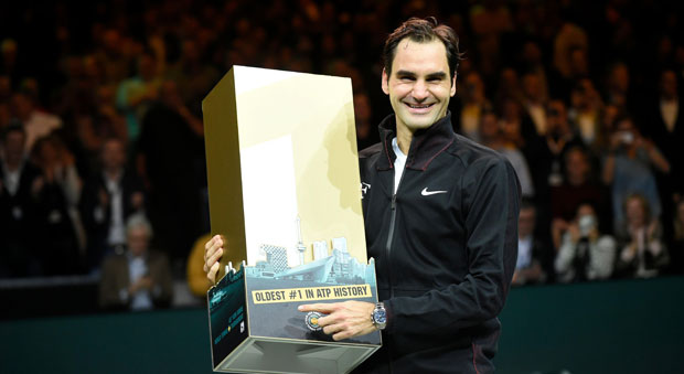Federer, que recibió tras el partido un trofeo que consistía en un enorme número 1 con la leyenda de Número 1 de más edad de la historia, superará el lunes en la próxima clasificación de la ATP a su gran rival, Rafael Nadal.