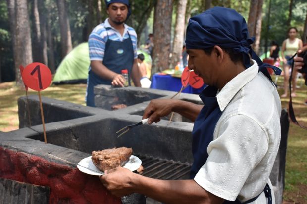 La principal actividad se concentró en el desarrollo de la competencia de asadores, donde los siete participantes asistentes desplegaron sus habilidades y técnicas diferentes para la preparación y cocción de la bondiola de cerdo.