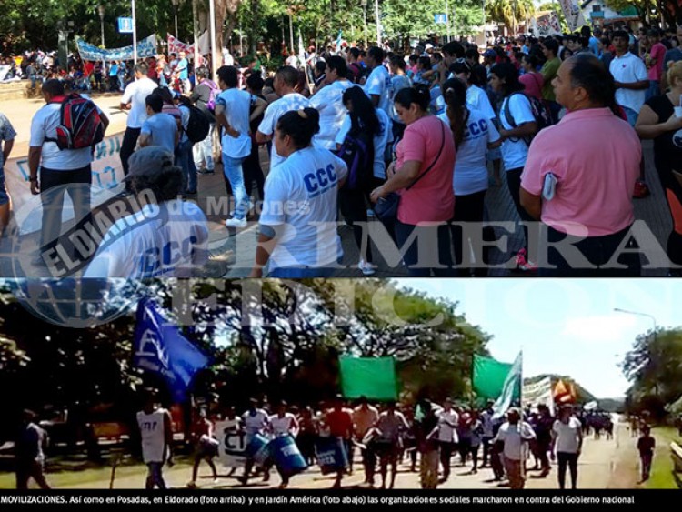Una numerosa columna integrada por desocupados y organizaciones sociales se movilizaron este miércoles al mediodía por la ruta nacional 12, a la altura de Jardín América en coincidencia, con otras protestas que se desarrollan en todo el país en contra del Gobierno nacional.