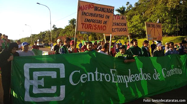 La jornada de lucha de sindicatos como ATE, CTA y Comercio, se realiza en “reclamo de la precarización laboral, los salarios por debajo de los índices de pobreza, además de la solidaridad con los empleados de comercio, ya que se ha despedido a un empleado que fue electo como delegado dijo a lavozdecataratas.com Lucas Loza, delegado de ATE.