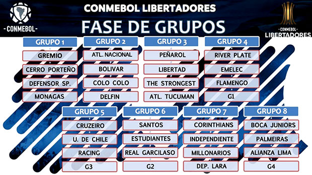 Por su parte, mientras que Racing integrará la zona 5 con Cruzeiro, Universidad de Chile y Vasco da Gama, a la vez que Estudiantes de La Plata estará con Santos, Real Garcilaso y Nacional, Independiente con Corinthians, Millonarios y Deportivo Lara y Boca irá con Palmeiras, Alianza Lima y Junior.