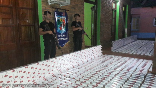 En el predio se incautó un total de 37 bultos de gran tamaño en los que había en total 1.860 gruesas de cigarrillos sin el aval aduanero correspondiente. Además. entre los paquetes había envoltorios fraccionados con marihuana.