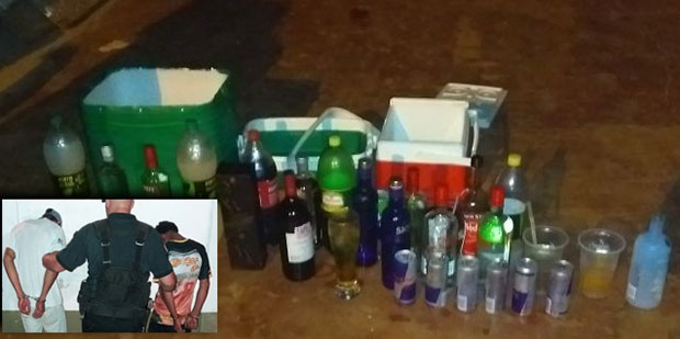 En el lugar se secuestraron dos conservadoras de grandes dimensiones con diez botellas de vino y vodka, además de latas de energizantes. Se instruye el sumario contravencional con intervención del Juzgado de Paz local.