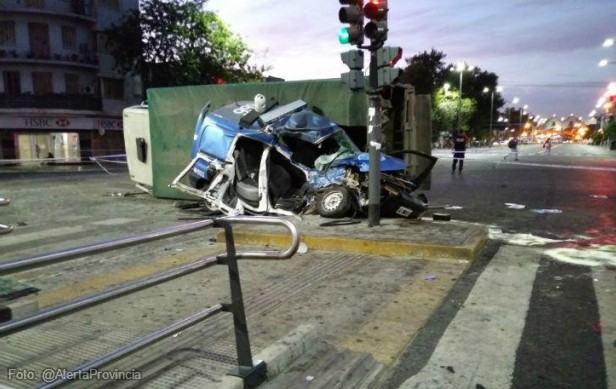 El fatal episodio ocurrió cerca de las 4 de la mañana, cuando el móvil Peugeot Partner en el que circulaban los policías chocó contra un camión y luego terminó impactando contra un semáforo, por lo que quedó totalmente destruido.