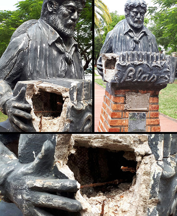La imagen del chamamecero, autor y compositor posadeño que se encuentra en la plazoleta de avenida Mitre y Jujuy de Posadas fue atacada por vándalos.
