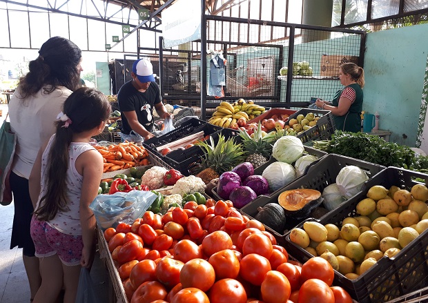 Box 13: 1 kilogramos de tomate perita $ 25; morrón rojo el kilogramo $ 60; morrón verde el kilogramo $ 40; lechuga 2 mazos $15; cebollita 3 mazos $10, uvas el kilogramo $ 40, zanahoria el kilogramo $15, zapallito de tronco el kilogramo $ 20.