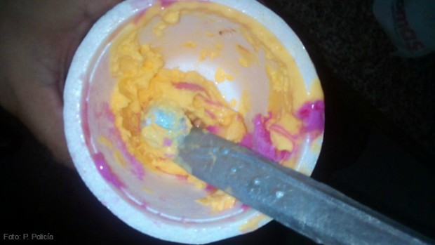 Los efectivos al revisar el pote de helado descubrieron que disimulado en la crema había un envoltorio de cocaína, por lo que se dio intervención a la Dirección de Toxicomanía.