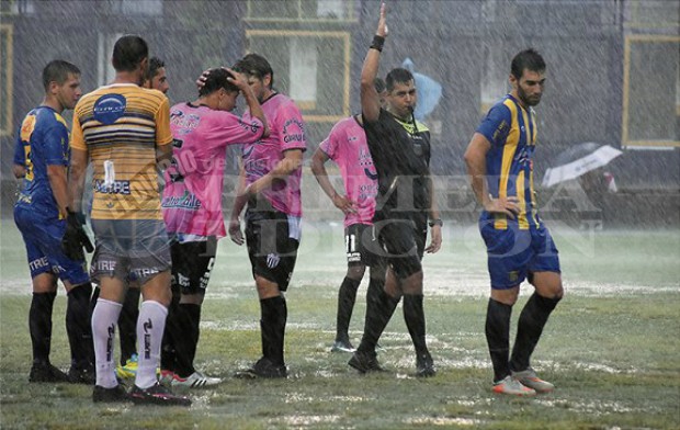 El trabajo de la semana, la expectativa y el juego. Todo se vio pasado por agua ayer en Rocamora, cuando una fuerte tormenta se desató y obligó al árbitro Franco Rioja a parar el partido entre Mitre y Atlético Posadas, cuando iban 30 minutos del primer tiempo y estaban igualando 0 a 0.