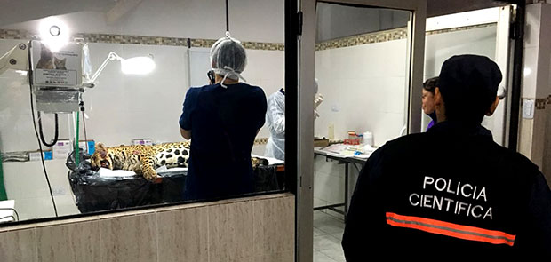 El equipo encargado de la necropsia estuvo integrado por Juan Manuel Arrabal veterinario del INMET; Sebastián Costa veterinario del INMET; Agustín Anzoátegui veterinario de Guira Oga; Paula Da Luz, doctora del IBS; Esteban Pizzio, Guardaparques IBS; Jorge Anfuso Director de Guira Oga; Dr Emanuel Grassi del Instituto Misionero de Biodiversidad; y Agustin Paviolo, Doctor del IBS.