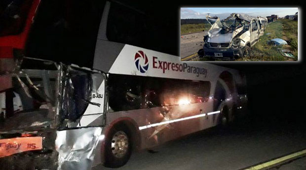 El fatal accidente ocurrió alrededor de las 5 en el kilómetro de la mencionada ruta, a esa altura denominada Autovía Artigas, cuando el ómnibus procedente de Paraguay que se dirigía a la ciudad de La Plata, chocó contra un utilitario Renault Kangoo.