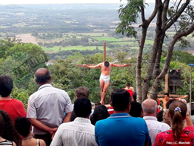 El Vía Crucis viviente, además de las misas que se realizan cada hora, son parte indiscutible de este día marcado por la devoción.