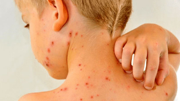 Los síntomas son fiebre, tos, conjuntivitis y erupciones en la cara que se propagan luego a todo el cuerpo. Entre otras complicaciones genera una picazón intensa, diarrea, otitis, neumonía y meningoencefalitis.