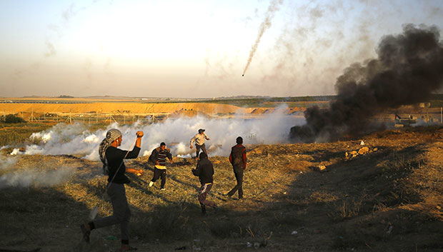 El Ejército israelí aseguró el viernes que los manifestantes lanzaron bombas incendiarias y neumáticos en llamas hacia los soldados que respondieron con fuego real, balas recauchutadas y gases lacrimógenos lanzados desde drones.