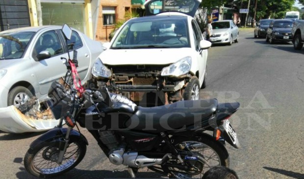 El siniestro vial ocurrió en avenida López y Planes, entre Lavalle y Francisco de Haro y tuvo como protagonistas a un auto y una motocicleta.