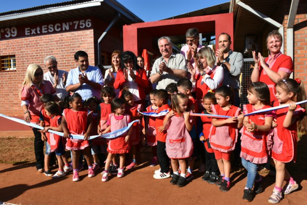 Primero fue el turno del NENI, en el barrio San Blas. Allí el primer mandatario cumplió con el ritual del corte de cintas, acompañado del intendente municipal Alfredo Gruber; la directora del NENI, Estela Alfonzo y autoridades educativas, además de los pequeños beneficiarios de esta nueva obra encarada por el Gobierno provincial en el norte misionero.