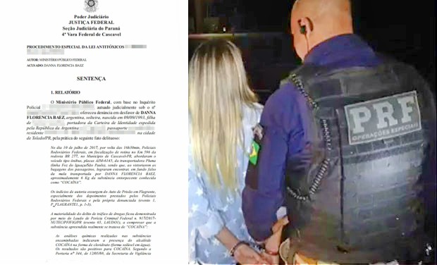 Tal como PRIMERA EDICIÓN informó ayer en exclusiva, Danna Báez fue sentenciada a 5 años y 10 meses de cárcel, en régimen semiabierto, por “transporte de estupefacientes”, después de ser sorprendida con una valija en la que viajaban seis kilogramos de clorhidrato de cocaína ocultos en un doble fondo.