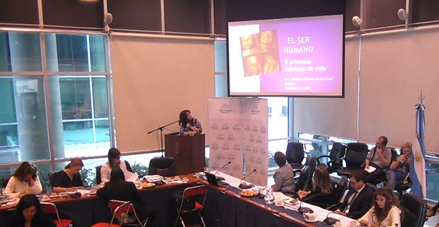 Por su parte, el médico cirujano Hugo Esteva aseguró que “una vez unido el óvulo y el espermatozoide comienza una vida, que si no es interrumpida por razones naturales o artificiales termina en un ser humano” y remarcó que “el embrión es distinto de su madre desde el comienzo” porque “tiene una identidad genética distinta”.