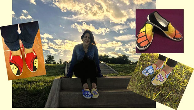 Siempre sostengo que pintar es una terapia, me encontraba frente a una psicóloga que pinta, me faltaba saber si su motivación para hacerlo era la misma. Su respuesta fue clara y sencilla, “pinto porque me calma, ayuda a descargar mis tensiones”. Es su cable a tierra, tiene su propio emprendimiento llamado “Mai colores”, se destaca en zapatillas personalizadas. La idea surgió cuando ella quiso unas zapatillas con un motivo de historieta argentina que no consiguió, entonces se las hizo ella misma. Ahora pinta a pedido, pinta para hacer terapia y para tener un extra que la ayude hasta que se encamine en su carrera.