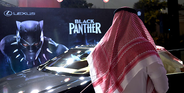 Los sauditas asistieron este viernes por primera vez en décadas a una sesión de cine abierta al público en Riad, la capital, con la proyección de la película de acción estadounidense “Pantera negra.